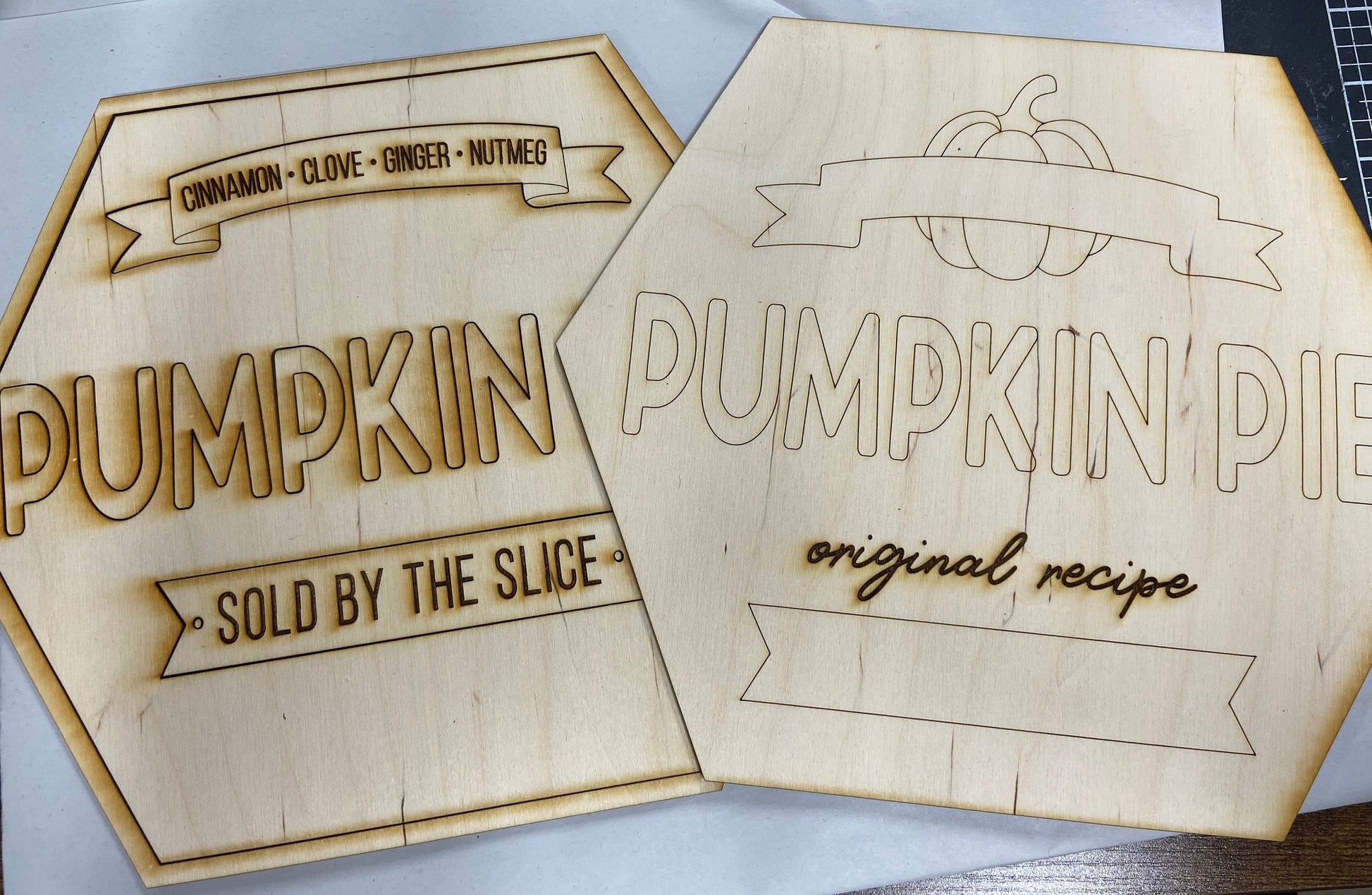 UNPAINTED Wood Pumpkin Pie sign with 2 banners and pre cut letter. Ready to paint