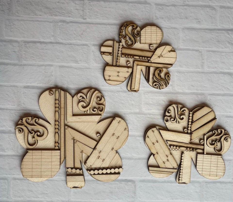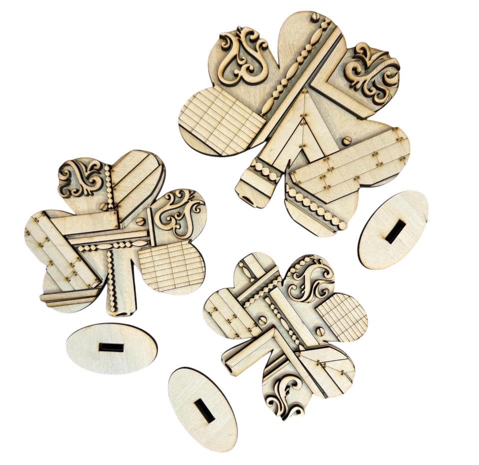 Vintage Clover Trio DIYunpainted/unassembled DIY Do it yourself wood cutout