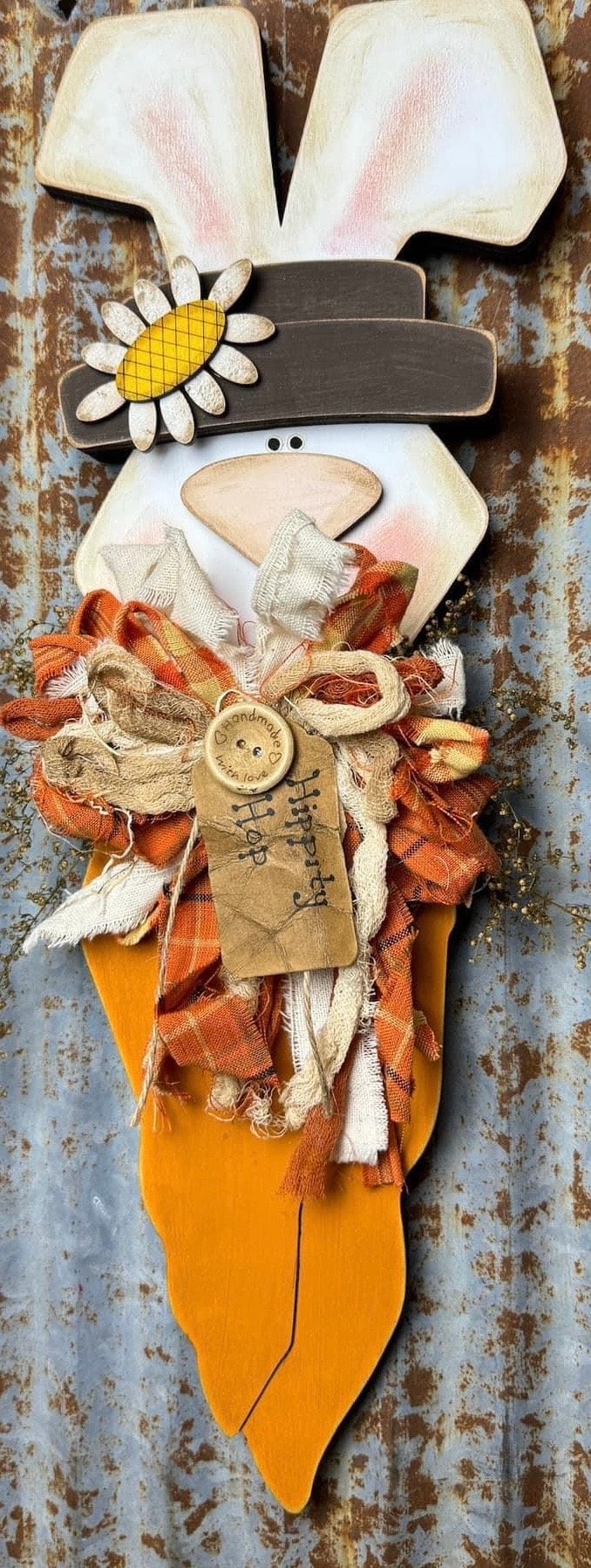 This Carrot top bunny is approximately 12 inches tall and 6 inches wide at its widest point (the ears)