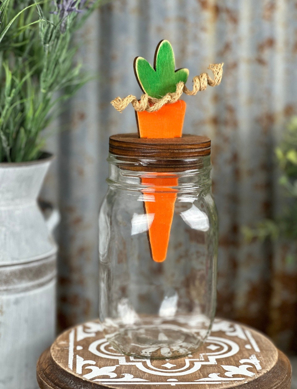 Mason Jar Toppers Bunny and Carrot DIY Kit Unpainted