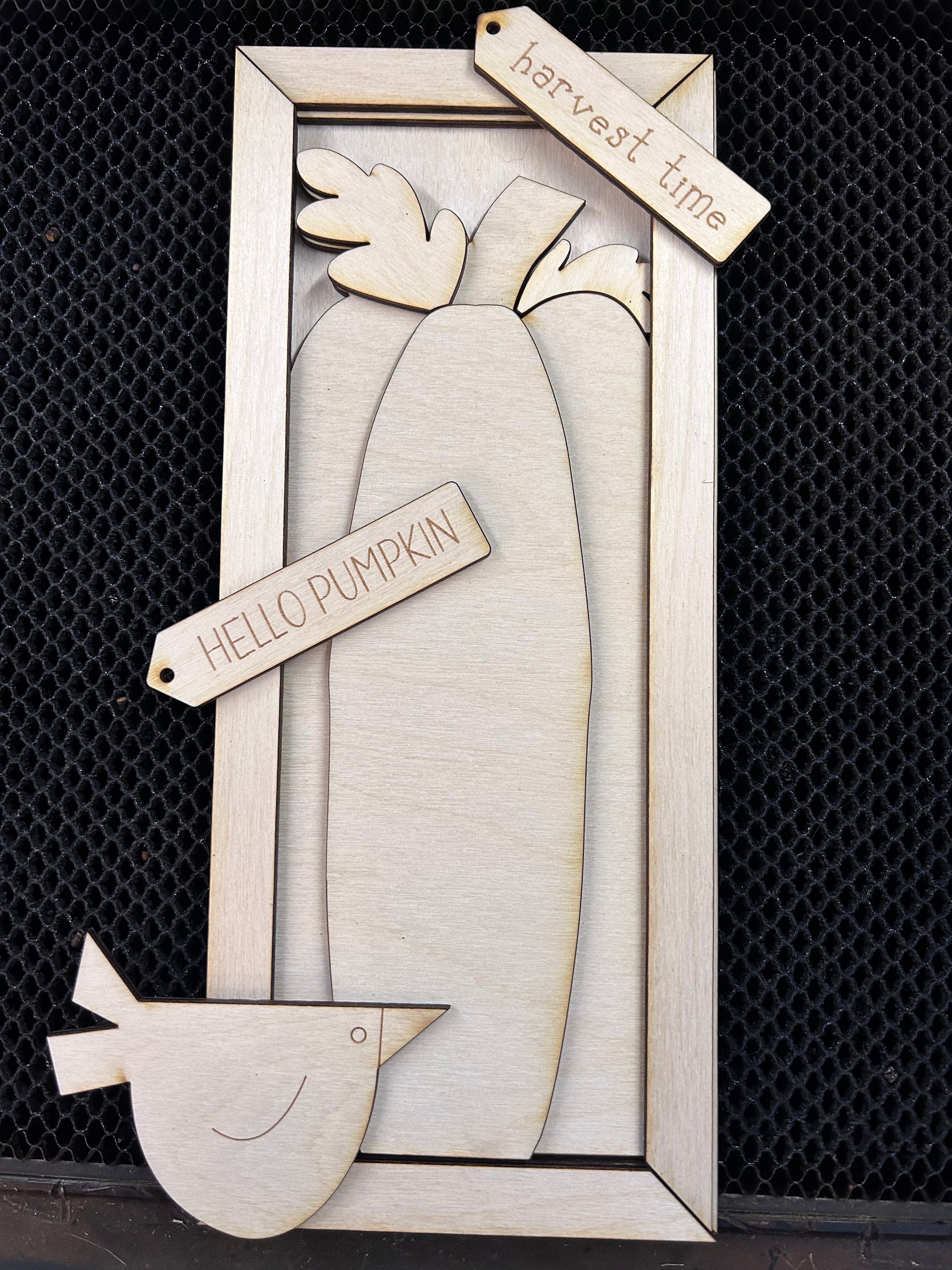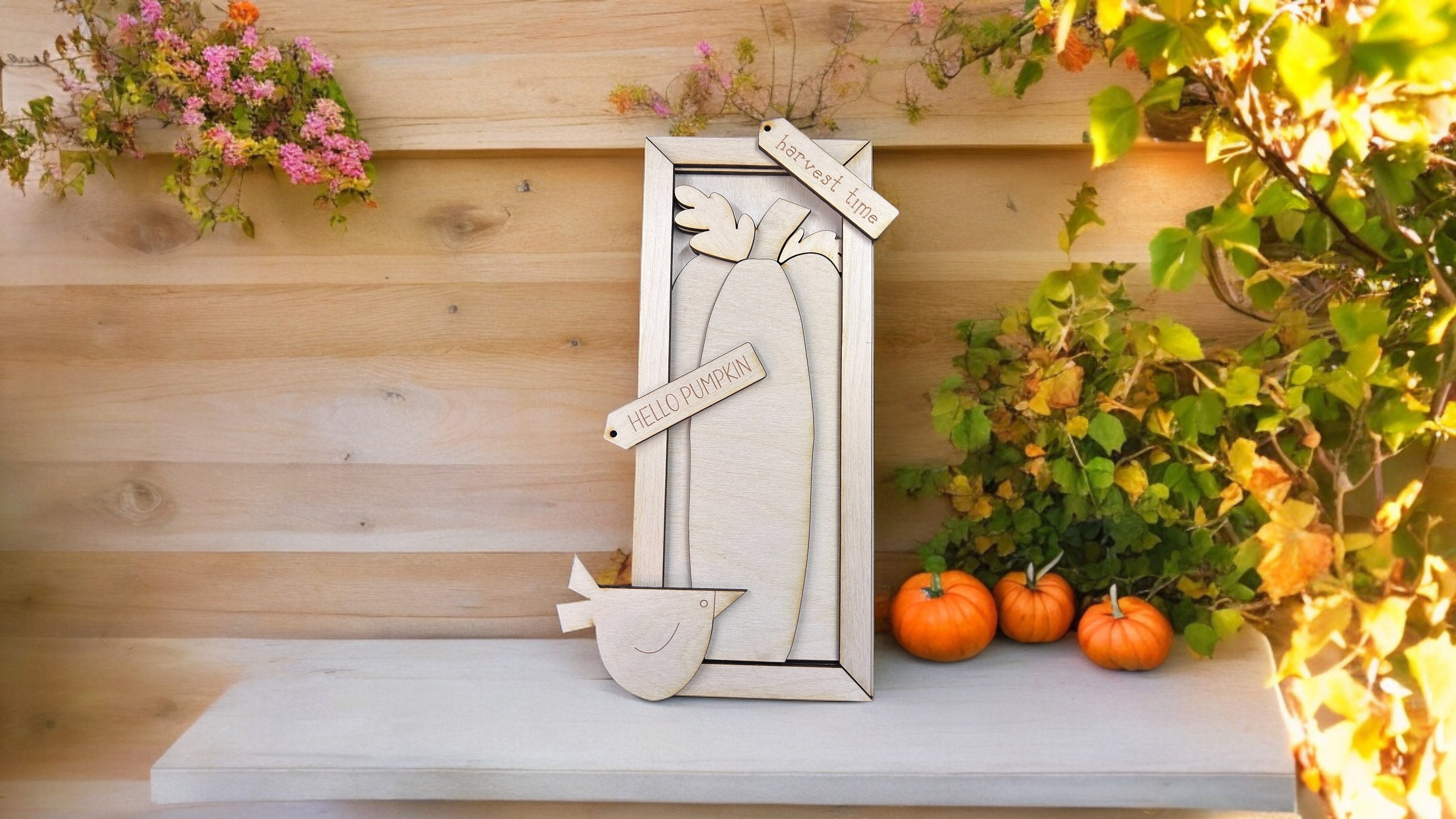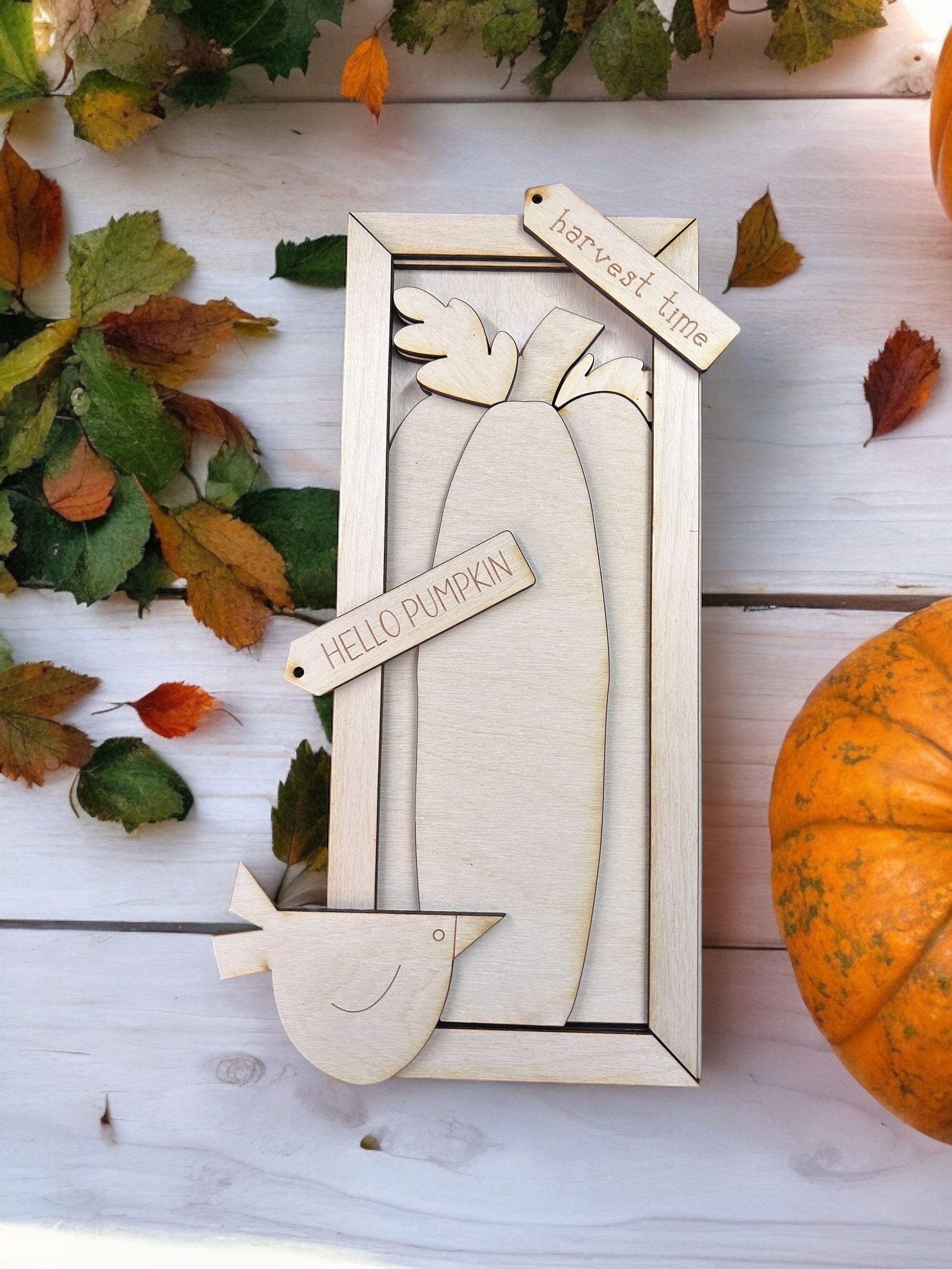 Hello Pumpkin with Harvest Crow Framed Sign Unpainted wood cutout Kit.