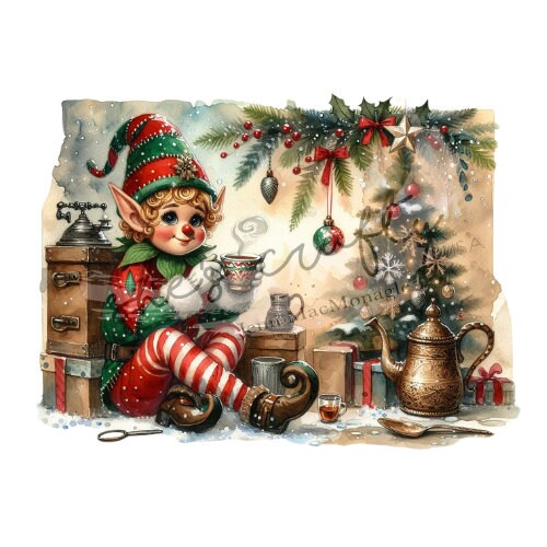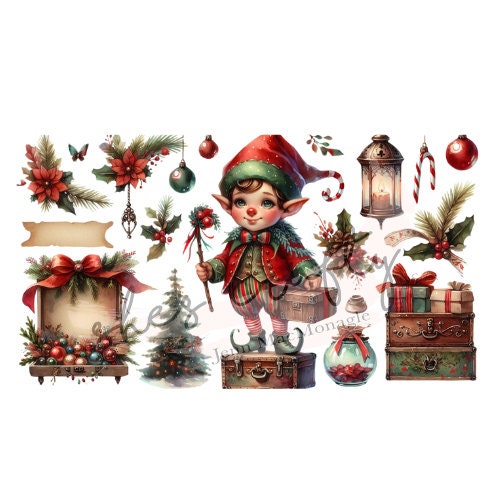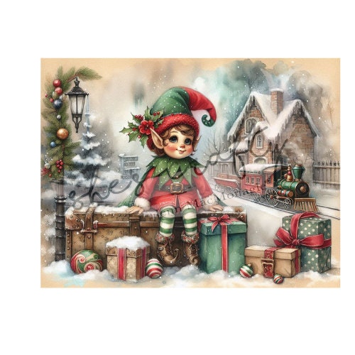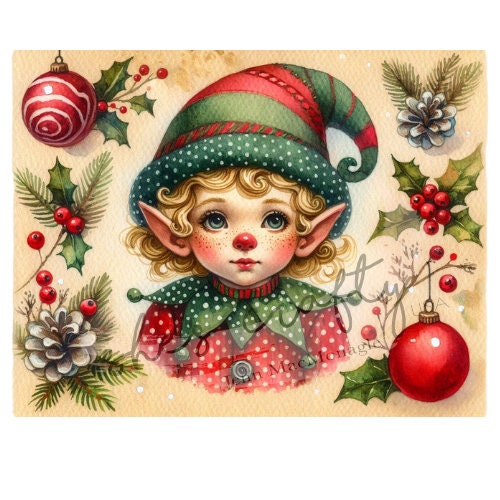 Vintage Christmas Elves Printable (Not a physical item)