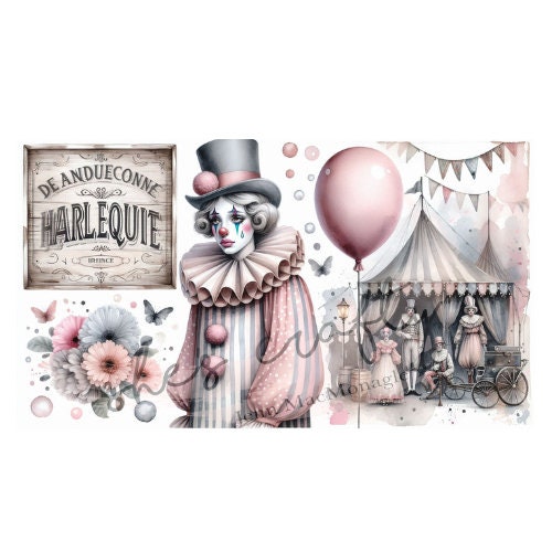 Send In The French Vintage Clowns Large Bundle Printables (Not a physical item)
