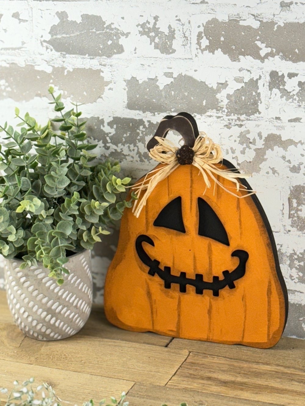 Farmhouse Jack o lantern Wooden pumpkin Shelf Sitter diy kit (UNPAINTED UNASSEMBLED)