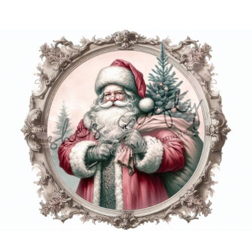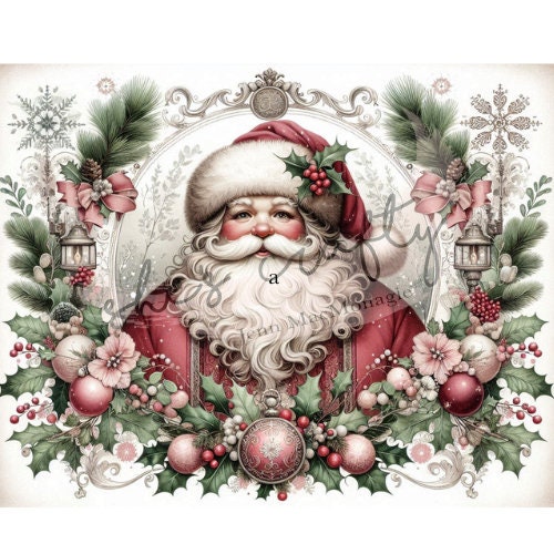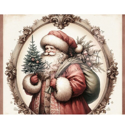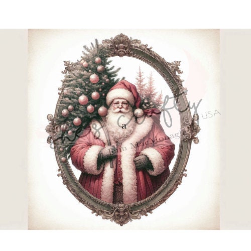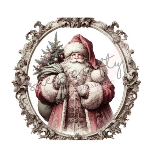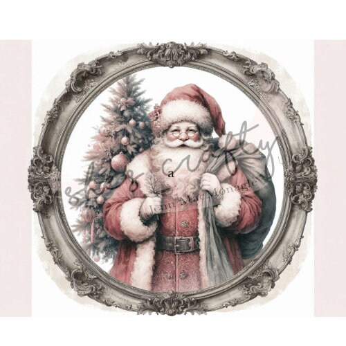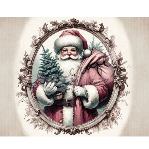 Vintage Santas in Oval Frames Bundle Printables (Not a physical item)
