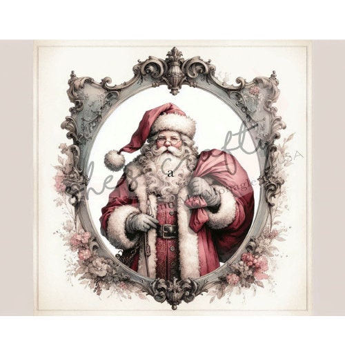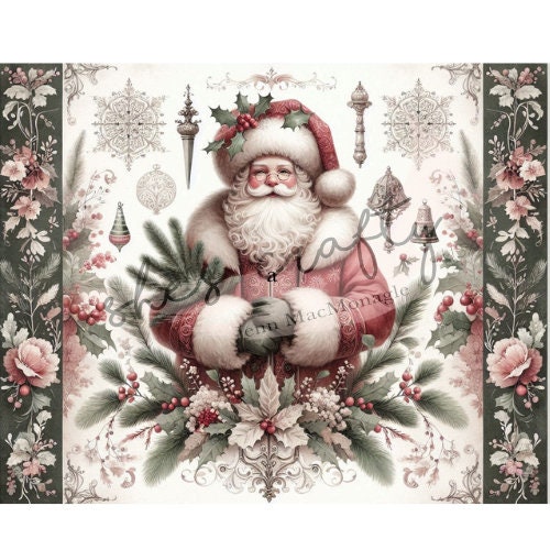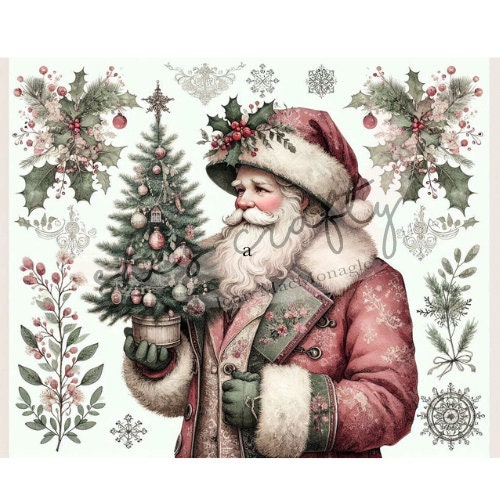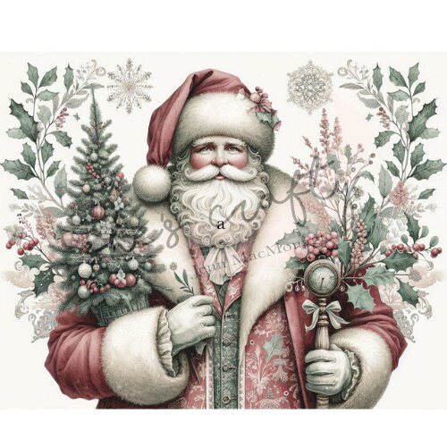 Vintage Santas with Christmas Trees Bundle Printables (Not a physical item)