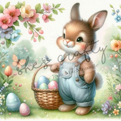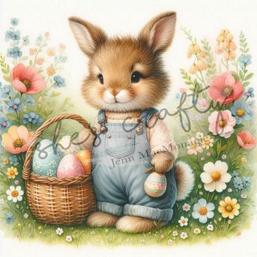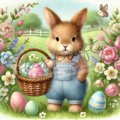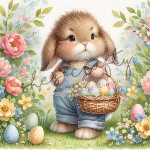 Bunny in blue overalls in the country Bundle Printable (Not a physical item) Digital Download