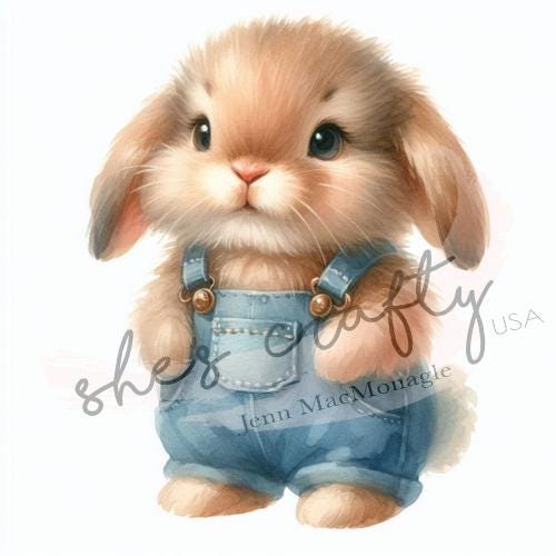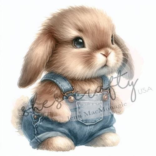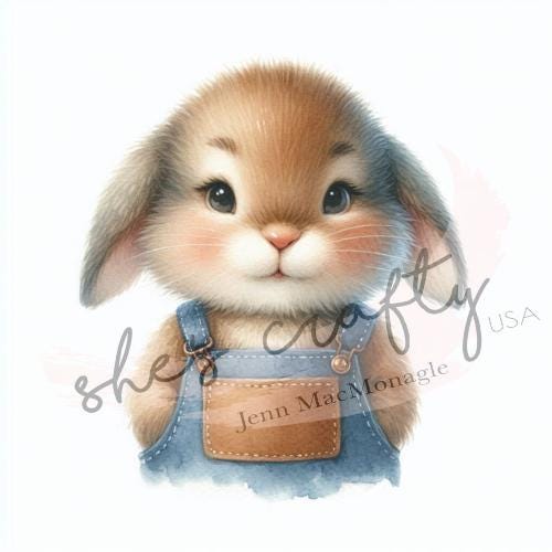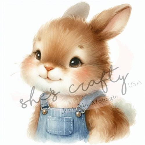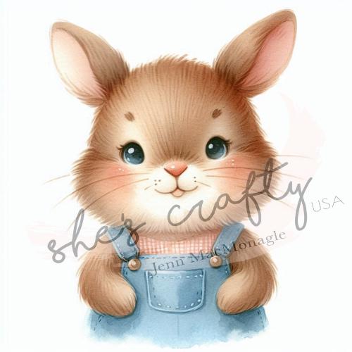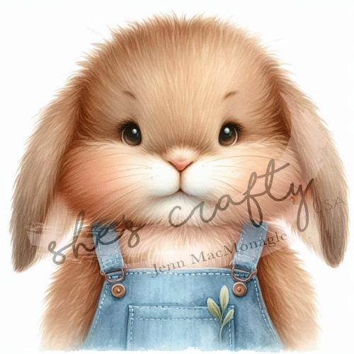Bunny Faces in blue overalls Bundle Printable (Not a physical item) Digital Download