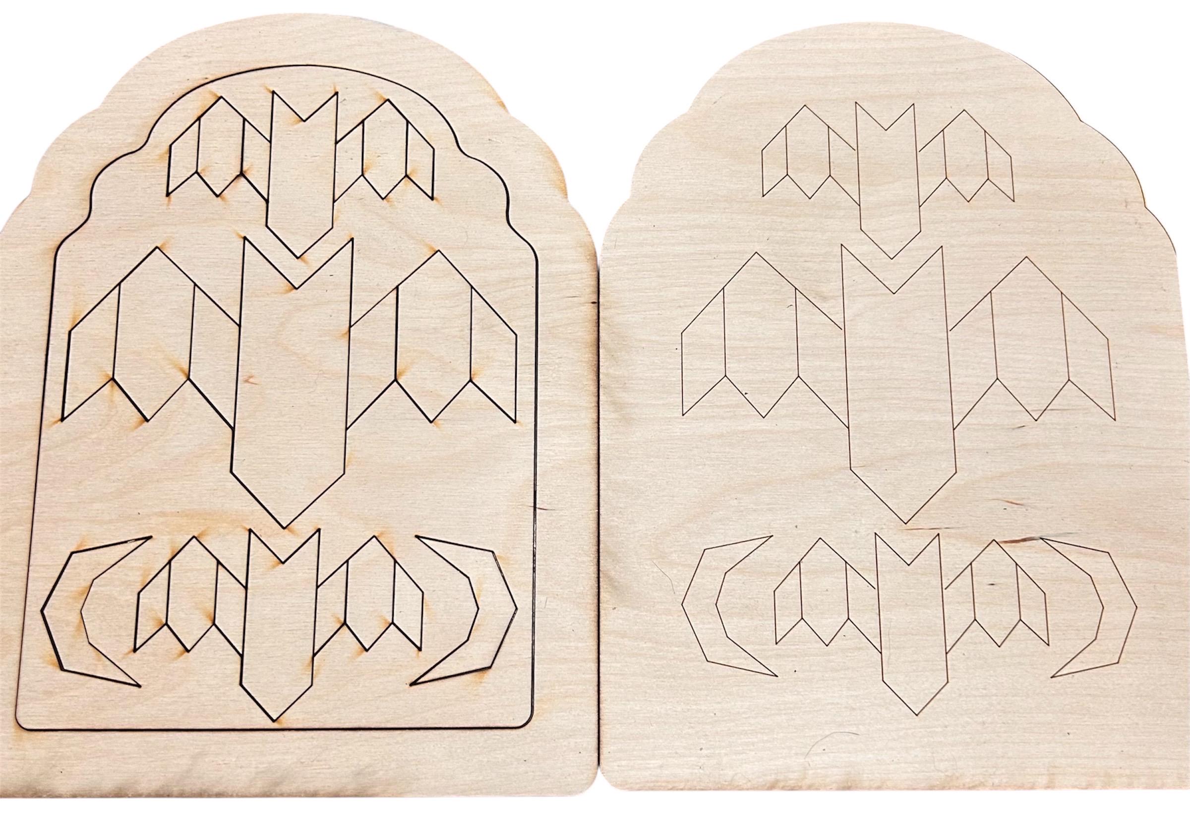 * Due to the laser cutting process, pieces may have a slight charred smell that diminishes after painting or staining.