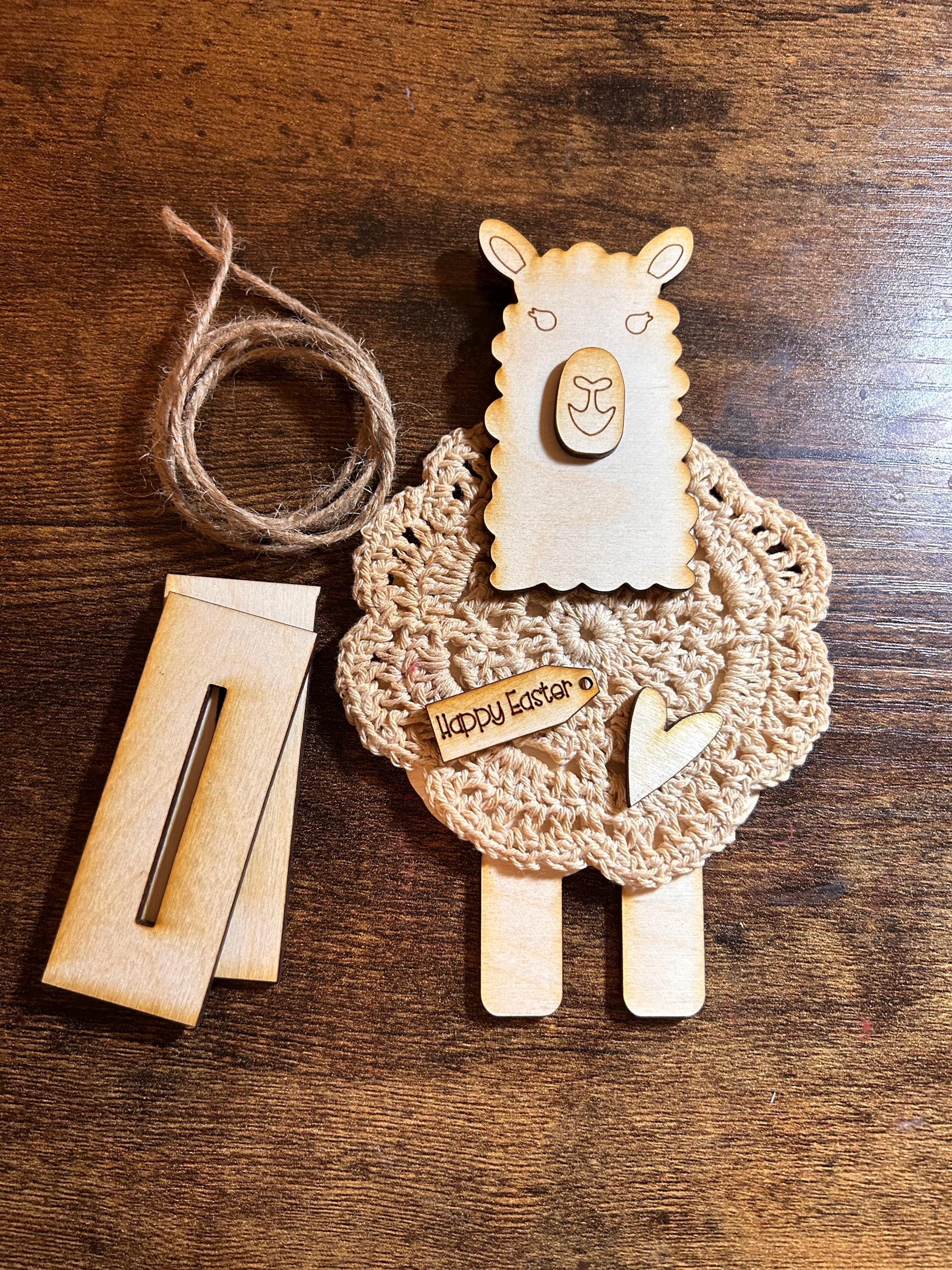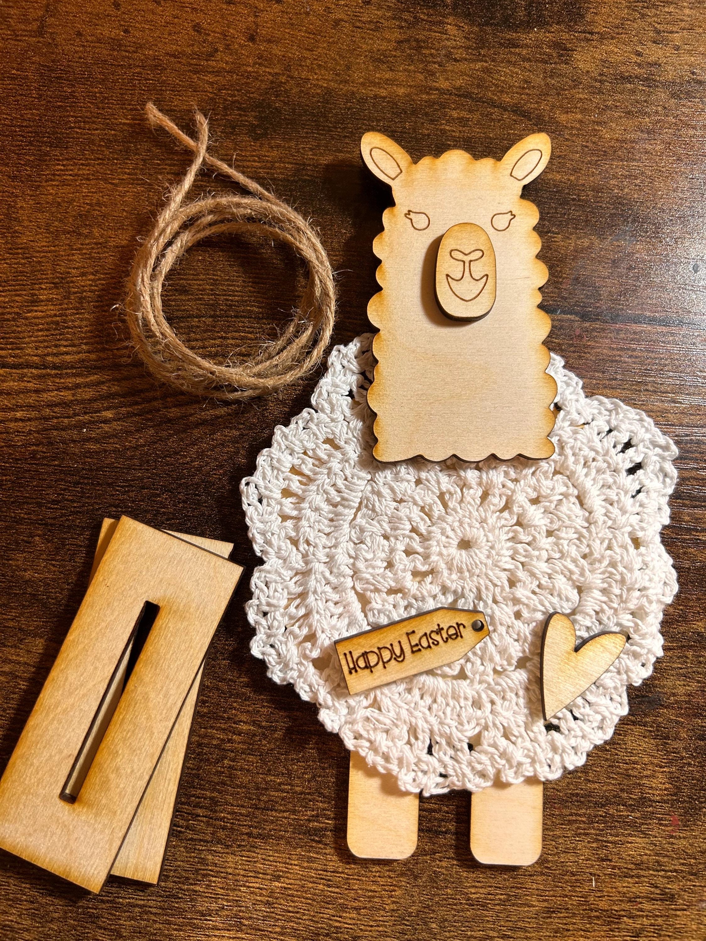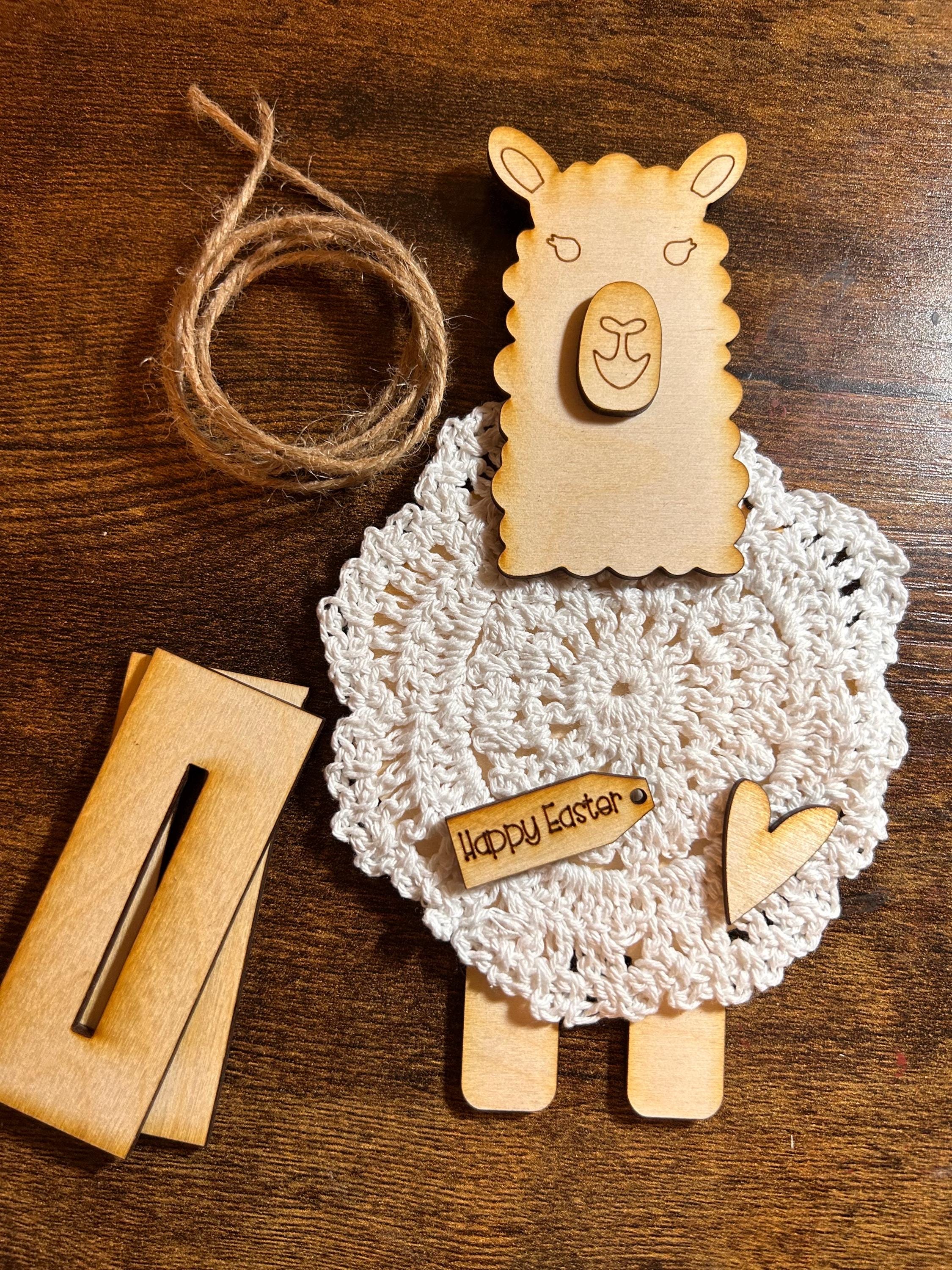 Doily Llama Rustic Farm Animal series Unpainted DIY Kit with coffee stained doily or Bundle all 3