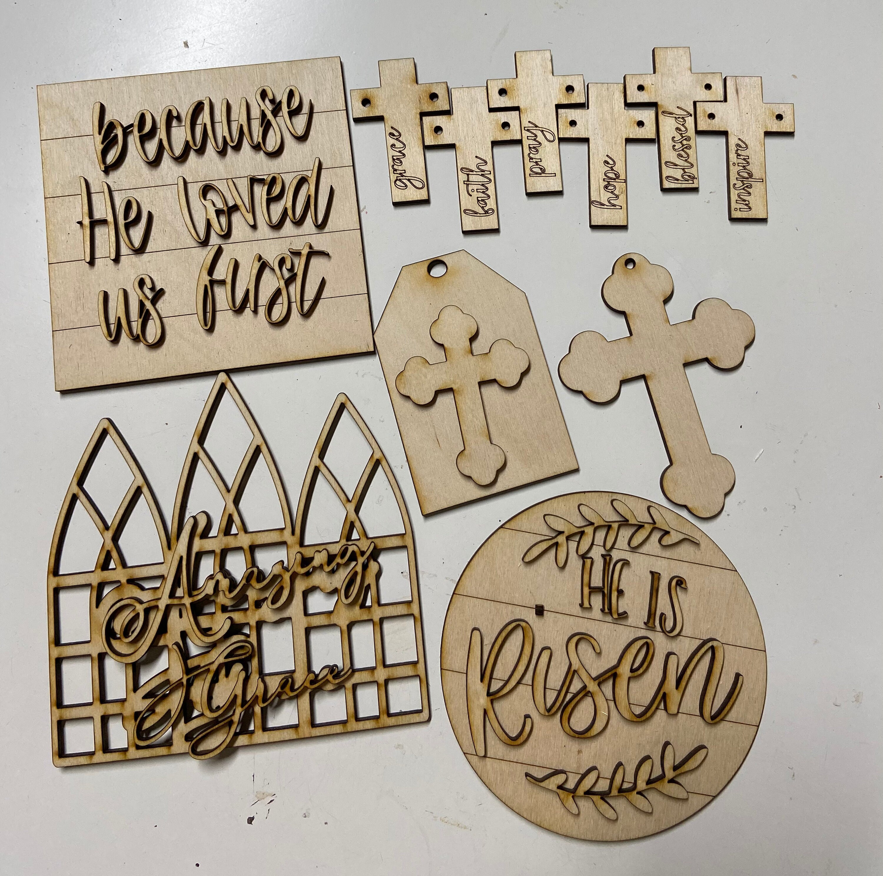 * All photos are examples only and not physical items. All wood cutouts are blank and arrive unpainted.
